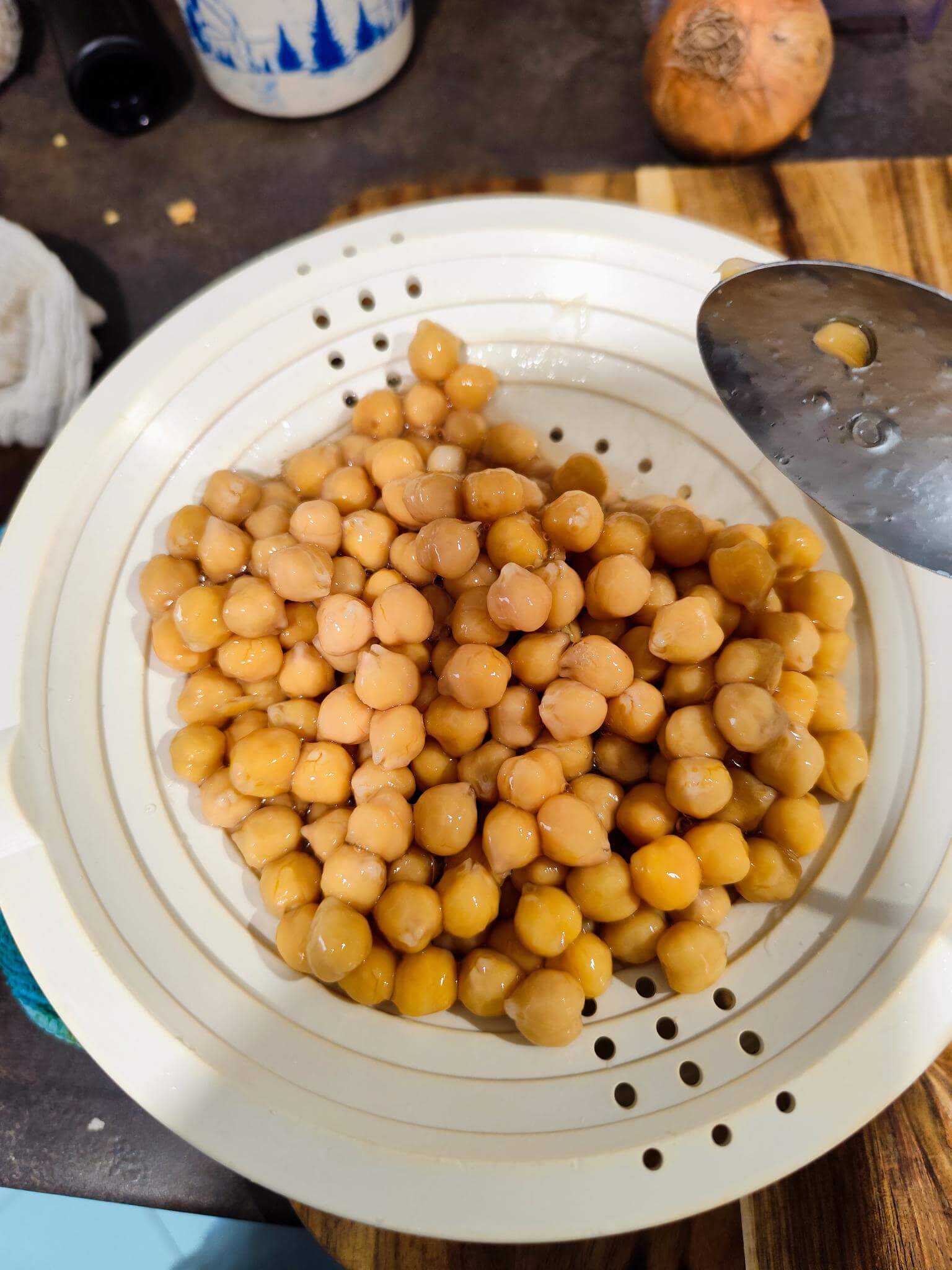 Pour commencer, il faut faire tremper des pois chiches secs pendant une nuit.