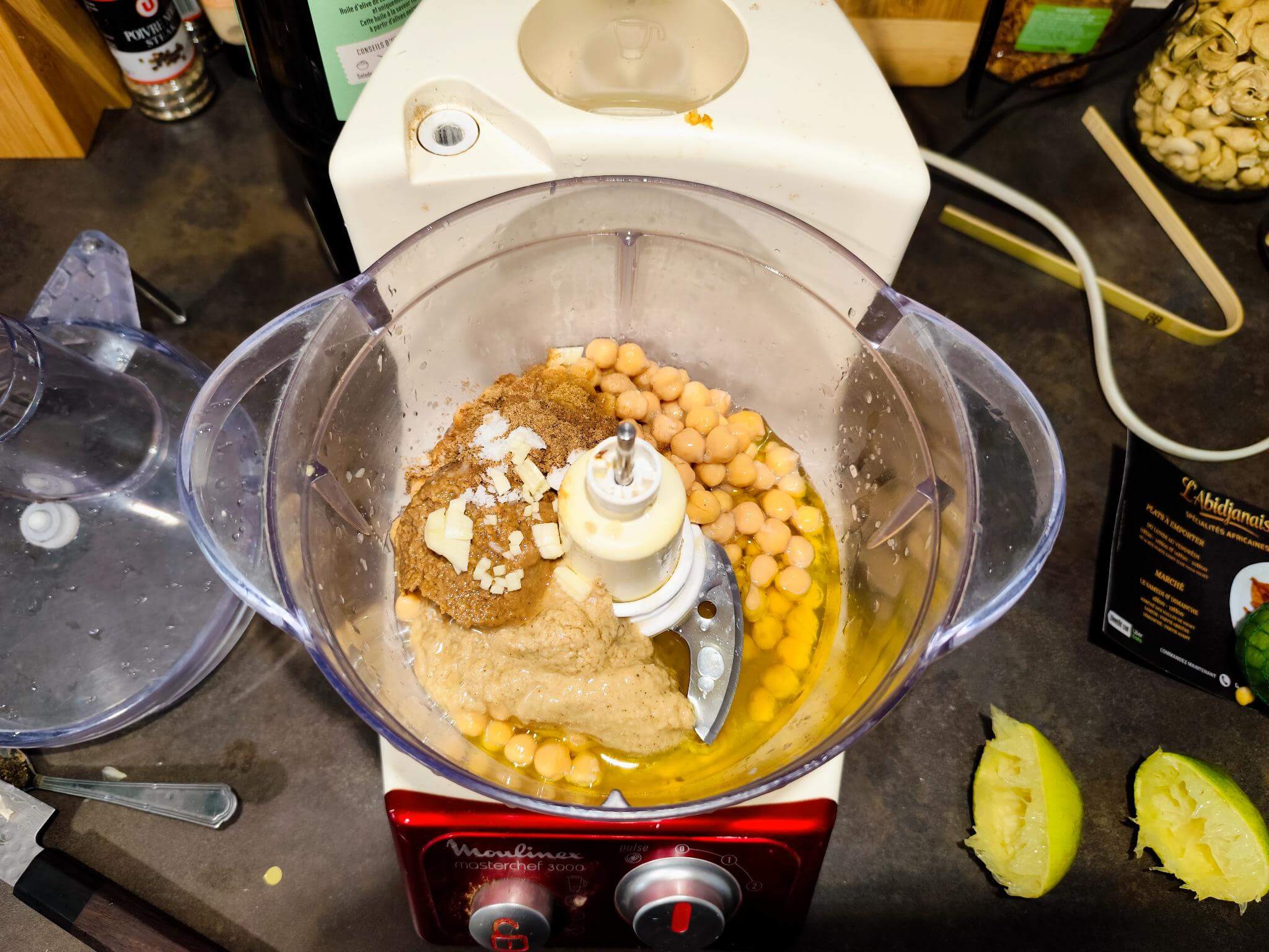 - 1 bonne grosse cuillère de tahini (purée de sésame)